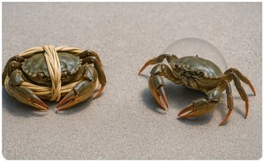 拿螃蟹来比喻。自由爬行的螃蟹就像是能量;用绳子扎起来,不能动了,就是物质。