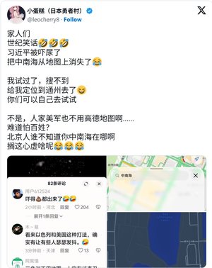 【人民報消息】(人民報記者金欣綜合報導)美國近期對委內瑞拉總統馬杜洛採取行動並逮捕,引發國際社會高度關注。在中國,一件突發事件暴露了中南海高官對於美軍的「斬首」效率之高感到脊背發涼,他們毫不遮掩的採取的第一個保命方式,就是屏蔽中南海地圖。有人嘲諷,這種鴕鳥戰術,太雷人了。 近日有中國網友發現,中國三大地圖應用程式,高德、百度與騰訊地圖,已無法搜尋「中南海」關鍵字。相關截圖顯示,只要搜索「中南海」,系統回傳:錯誤訊息,並建議改以其它地點搜尋。此一變動在網路上引發討論,很多網友都聯想到,美國在委內瑞拉的閃電式斬首行動,讓中南海高官們嚇尿褲子了。 外界猜測,中共可能擔憂,美國逮捕馬杜洛的行為將波及至中共黨魁習近平和一眾高官,因此將中共最高領導層的駐地:中南海從地圖程式上撤下。因為「中南海」是中國共產黨與中共政府最高權力中樞,不僅是多個核心機構的所在地,在中南海辦公的中共高層領導人和高級幹部的配偶和家人也可以居住在中南海。不過,網友們嘲諷,由於美軍的行動並不依賴中國製造的地圖程式,撤下地圖的做法就是此地無銀三百兩。還有網友質疑「難道是怕百姓?北京人誰不知道你中南海在哪啊」。