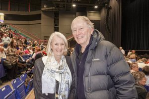 2026年1月20日晚上,Webster大學心理學與諮商系系主任、心理學教授Ros Thomas和先生一同觀看了神韻國際藝術團在瑞士的日內瓦市Arena劇院(Arena de Genève)的第一場演出。(亦凡/大紀元)