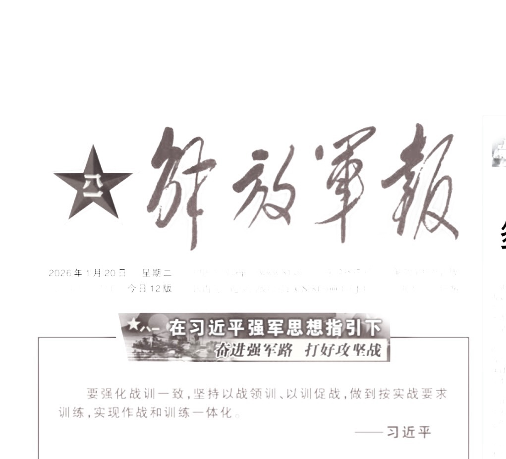 1月20号,军报头版头条是来自陆军某旅的观察报告。但主要突出了习近平所谓“强军思想”,并把习近平的指示“按实战要求训练,实现作战和训练一体化”放在显要位置。
