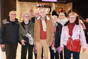 2026年1月26日下午,法國農業信貸銀行東北退休人員協會主席François Regnauld先生(中)與協會會員們一起觀看了神韻國際藝術團在巴黎國際會議中心的演出。(張妮/大紀元)