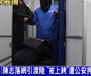 看央視的畫面,頭頂毛髮有點稀疏的陳志,在飛機上神情還挺鎮定的。下飛機時,他被特警人員用黑布蒙頭,戴上手銬,給他套上了一套囚服,衣服上有印著「東看」兩個字,顯示或收押在北京東城區看守所,押解陳志的汽車上也配有北京車牌。