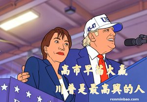 有網友說:高市早苗大贏,川普是最高興的人。(人民報/AI製圖)