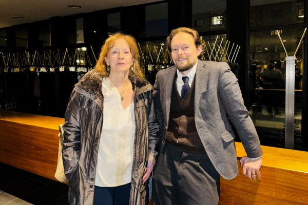 2026年2月9日下午,获奖房地产经纪人Frederic Sieber先生和母亲观赏了神韵纽约艺术团在德国首都柏林德意志歌剧院(Deutsche Oper Berlin)今年在当地的第二场演出。(王亦笑/大纪元)