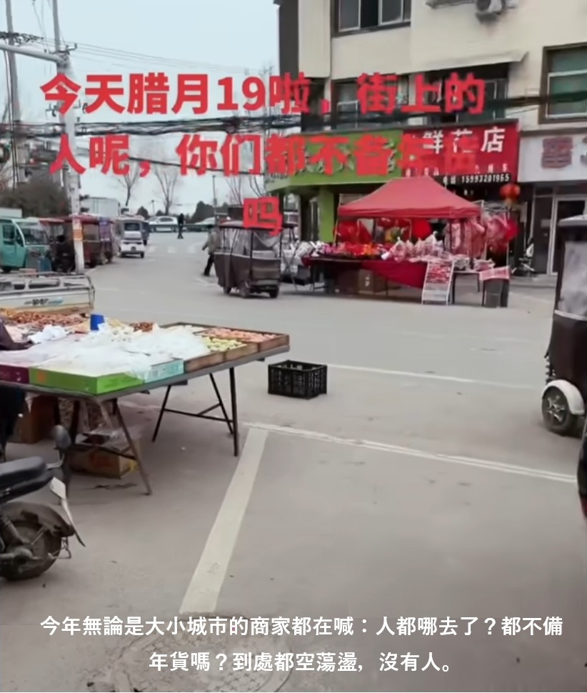 据多地村民反映,今年过年与往年相比有几点明显变化:一是人口明显减少;二是农民工未能赚到钱,家庭经济普遍拮据;三是整体购买力显著下降。 同时,社交平台上也出现大量反映类似情况的视频。其中,北方地区一些村落人丁稀少,犹如空村。 但是,中共的宣传却天天高唱“光明论”,不断的推出各种促进消费的政策,一直给人灌输“明天会更好”。 有一年轻网民,一脸冷静的看著镜头说:(当局)“只谈经济繁荣,不谈民生艰难;只谈消费不足,不谈底层负债;只谈平均存款,不谈贫富差距;这就是在避重就轻。这就是在耍流氓。” “天没亮垃圾桶被人翻了八遍,还说人均存款11.89万。这个人均是谁?能分多少给我?去哪里领?去完了垃圾桶都没你翻呢?”