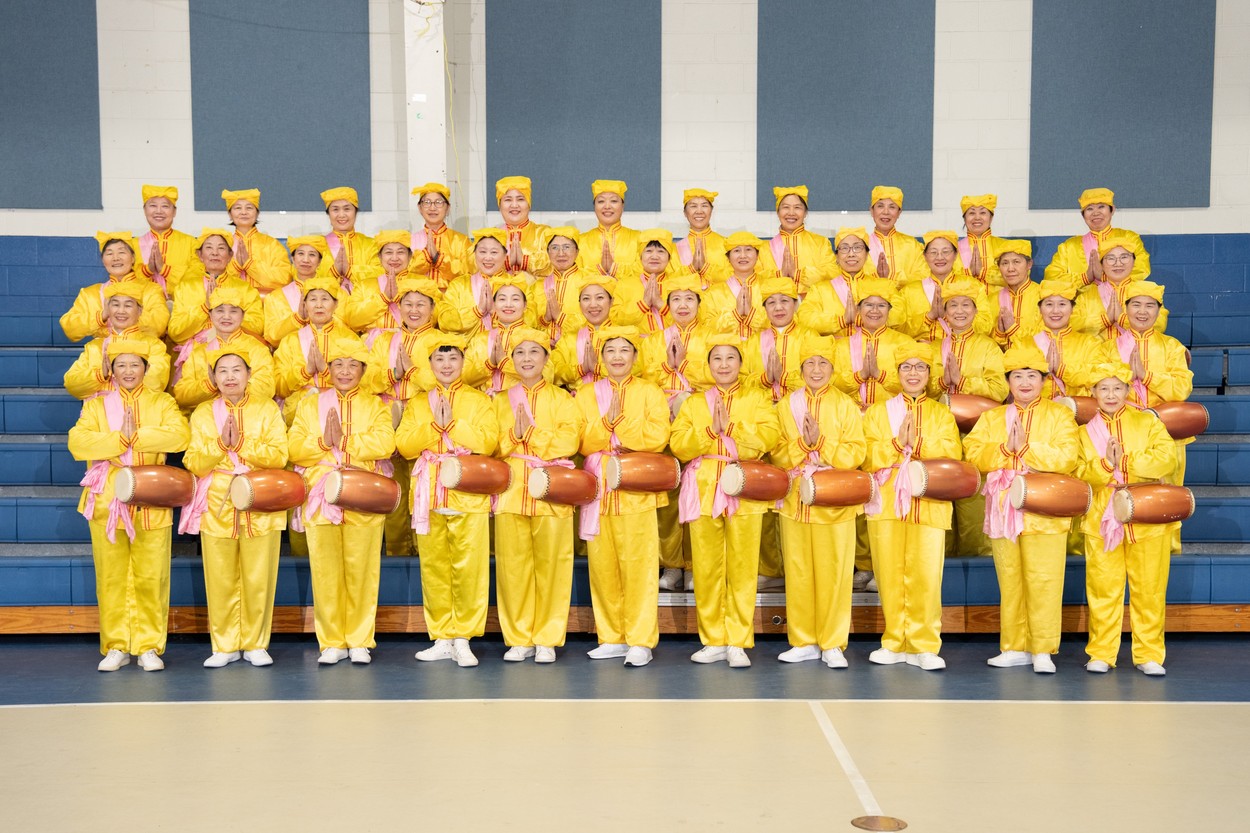 紐約腰鼓隊法輪功學員恭祝李洪志師父新年好。(戴兵/大紀元)