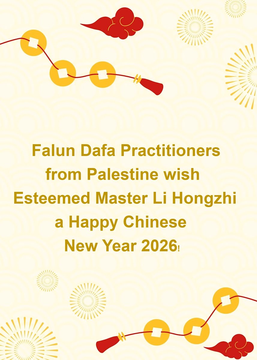 巴勒斯坦法輪功學員恭祝李大師2026年新年快樂。(明慧網)