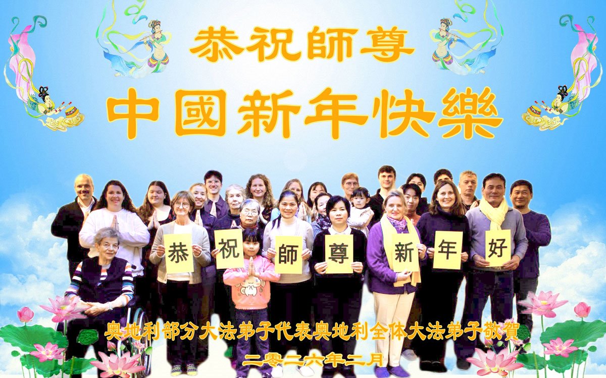 奧地利法輪功學員恭祝李大師新年好。(明慧網)