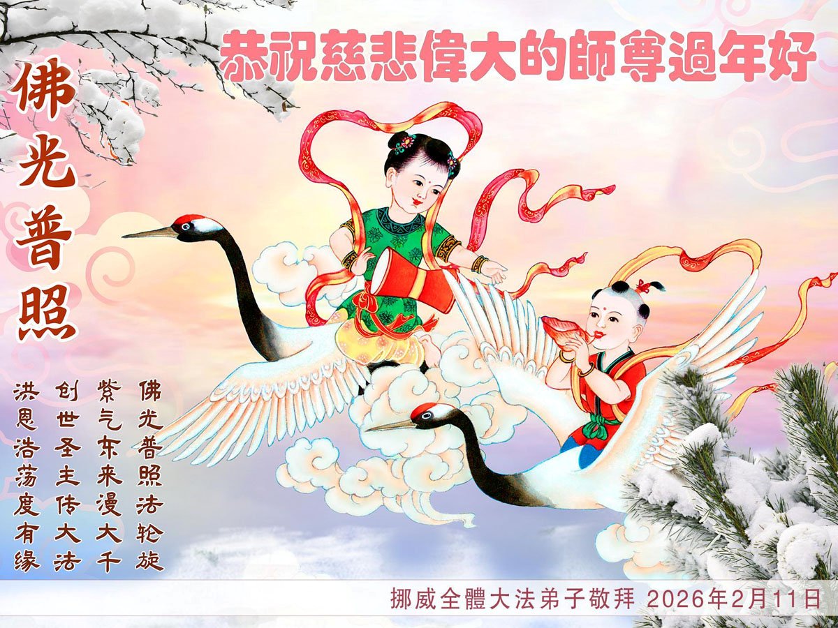 挪威全體法輪學員恭祝李大師過年好。(明慧網)