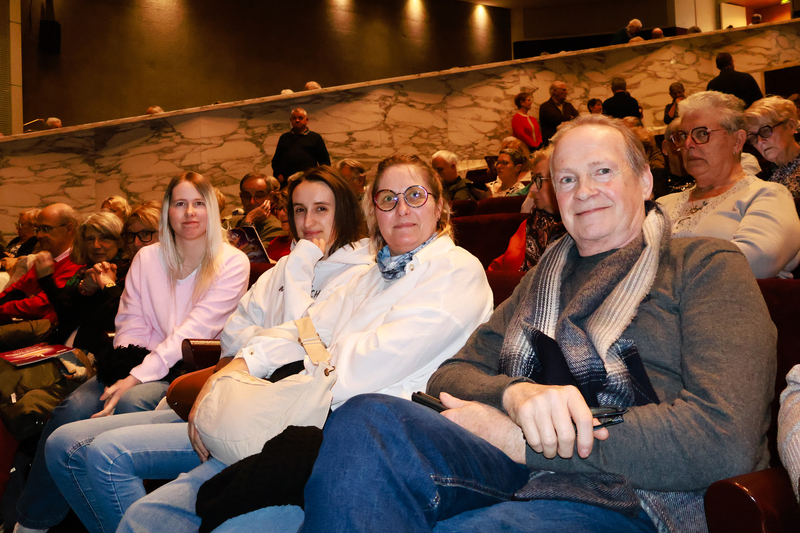 2026年2月19日下午,公司總監Thierry Taniou先生(右一)攜太太和女兒及兒媳在南特市議廳(Cité des Congrès de Nantes)觀看了神韻世界藝術團本演季在法國南特的第三場演出。(張妮/大紀元)