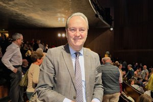 2026年2月26日晚,美國神韻紐約藝術團在西班牙聖勞倫索的聖洛倫索-德埃爾埃斯科里亞爾劇院(Teatro Auditorio San Lorenzo de El Escorial)上演了今年當地第二場演出。西班牙國會議員Alberto Fabra Part觀看了演出。(王亦笑/大紀元)