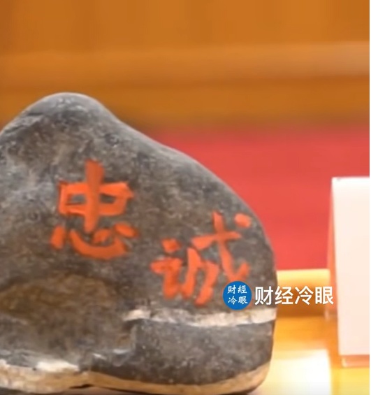 石头上刻著“中国”与“忠诚”,宣称要“永远跟党走”。
