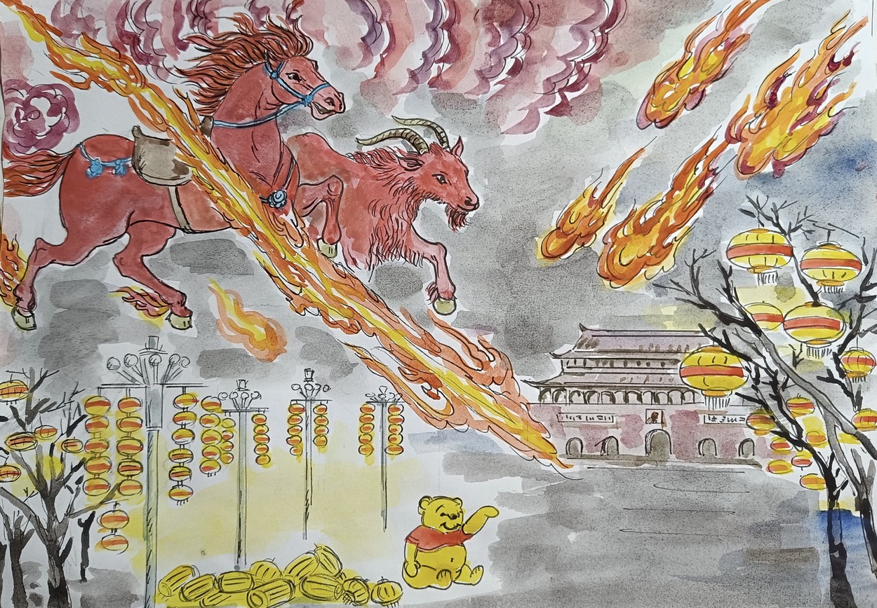看来这个“赤马红羊年”火气过旺的格局,有人真怕了。媒体调查,总书记亲自指挥、亲自部署,要把大黄灯笼高高挂改造成小熊维尼“黄红黄”或“红黄红”配色的灯笼。(清玉/人民报制图)