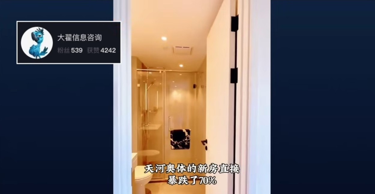 2026年4月,广州天河奥运中心附近的房价下跌70%。(视频截图)