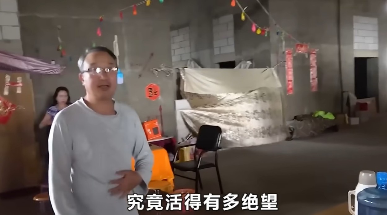 烂尾楼住户的心声:为了买房子,我们倾家荡产,妻离子散,家破人亡。(视频截图)